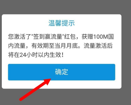 进入签到页面,点击签到按钮。按照本页面上方所示签到天数对应的流量,即可赢取相应的流量。