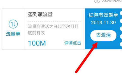 在红包中心可以看到我们获得的流量红包,点击激活按钮,即可以成功激活相应的流量了。
