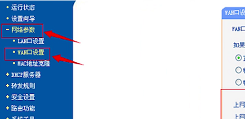 3、然后选择“网络参数”——“WAN口设置”,这样可以在页面中间看到自己的账号了;
